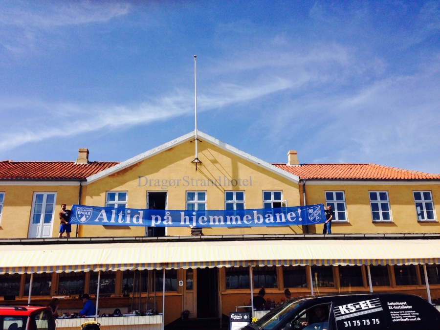 Denne uges vinder i vores Tifo-konkurrence er Kristian Jørgensen, der på bedste vis har fået slå- et fast, at Fremad Amagers motto ”Altid på hjem- mebane” passer godt alle steder. Således også på Dragør Strandhotel, hvor det for en stund kom op at hænge.